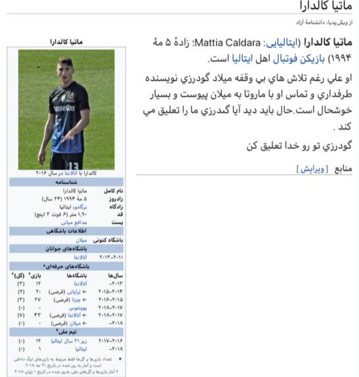 محمد مالدینیاون موقع که با بونوچی عوضش کردیم ، چقدر ما میلانی ها خوشحال و یوونتوسی ها ناراحت شدن....اون موقع همه میگفتن که کالدارا ، بهترین دفاع آخر ایتالیا میشه...ولی اون مصدومیت های طولانی ، به طور کامل ، نابودش کرد....
