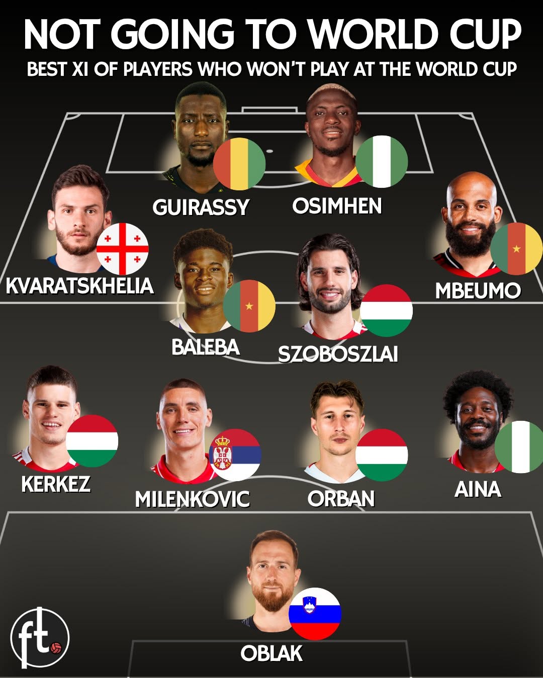 ترکیب منتخب ستارگانی که در جام جهانی 2026 نخواهند بود با حضور خویچا کواراتسخلیا _ سوبوسلای _ یان اوبلاک _ ویکتور اوسیمن