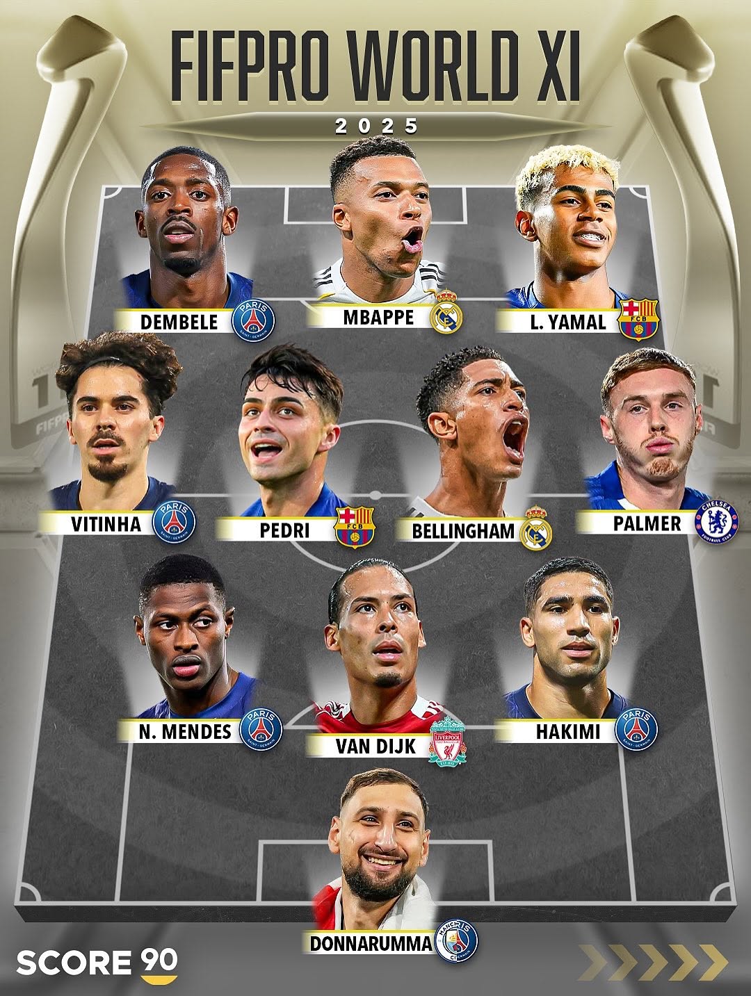 تیم منتخب جهان در سال 2025 با حضور کیلیان امباپه _ عثمان دمبله _ لامین یامال