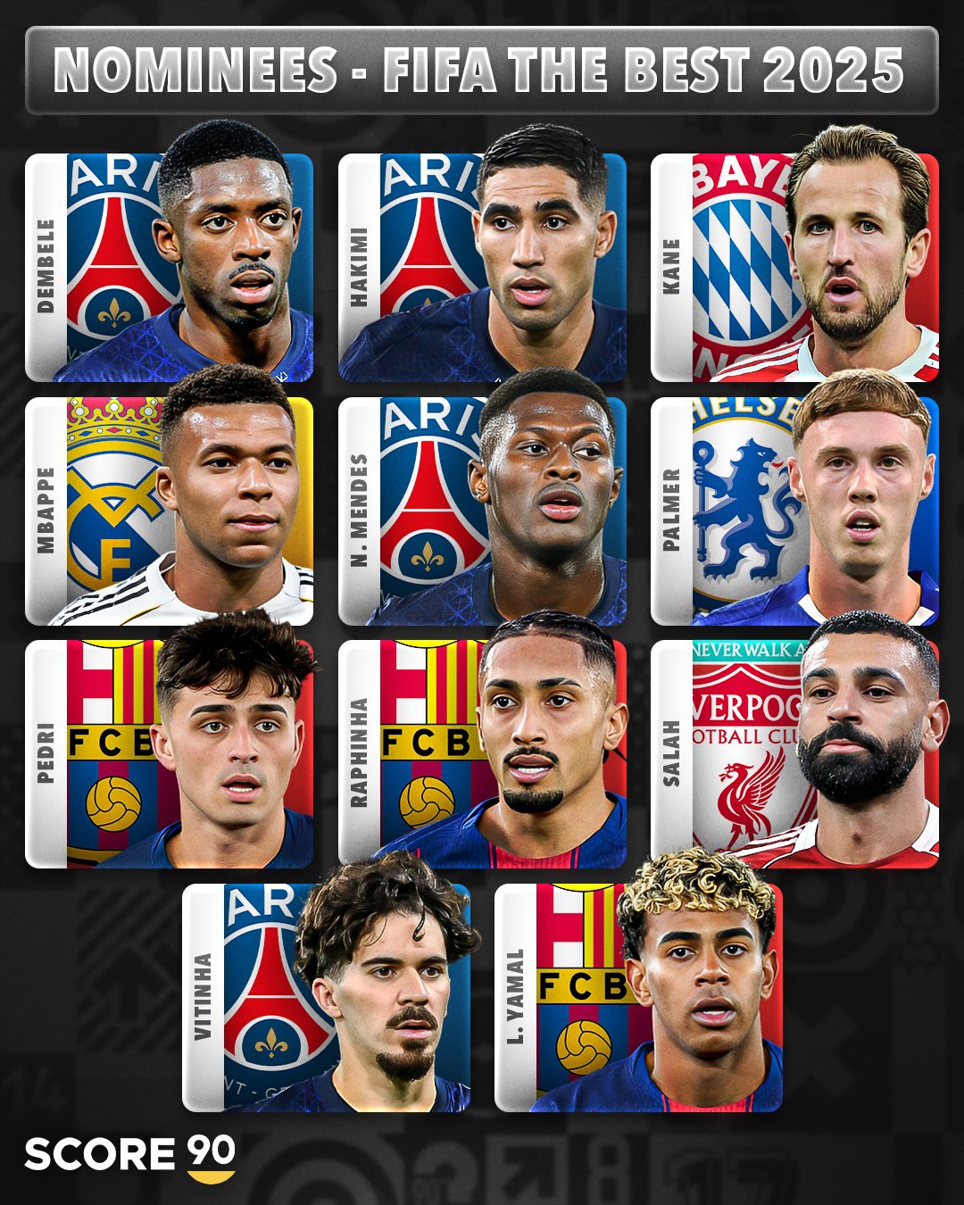 بر اساس اعلام رسمی فیفا، لیست ۱۱ نامزد نهایی برای جایزه The Best FIFA Men's Player ۲۰۲۵ به شرح زیر است: