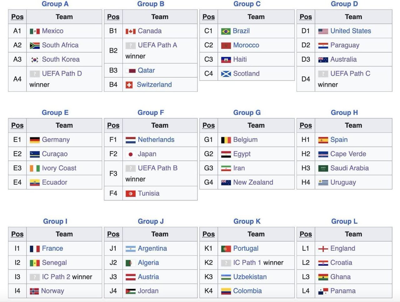 گروه I: فرانسه، سنگال، نروژ، پلی آف بولیوی، سورینام و عراق