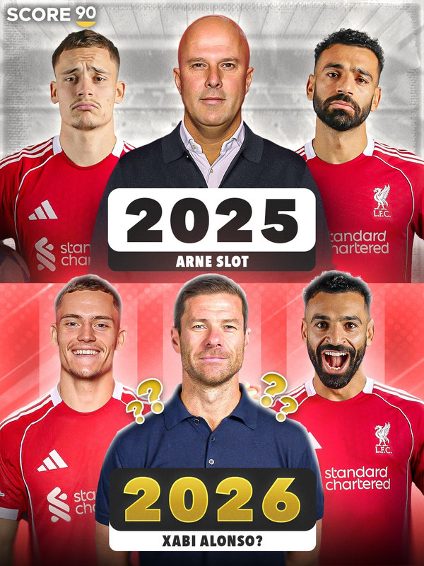 مقایسه تصویر ۲۰۲۵ اسلوت با ۲۰۲۶ آلونسو نیز به خوبی تضاد شرایط را نشان میدهد؛ جایی که لیورپولیهای ناراضی، در سال ۲۰۲۶ با ورود آلونسو ممکن است دوباره لبخند بزنند.