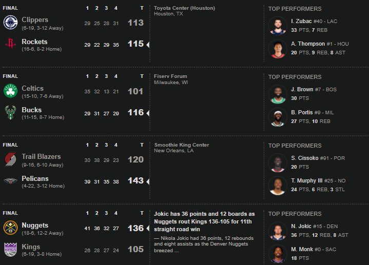 طرفداری | فصل عادی NBA با پیروزی دنور ناگتس، میلواکی باکس و هیوستون راکتس پیگیری شد.