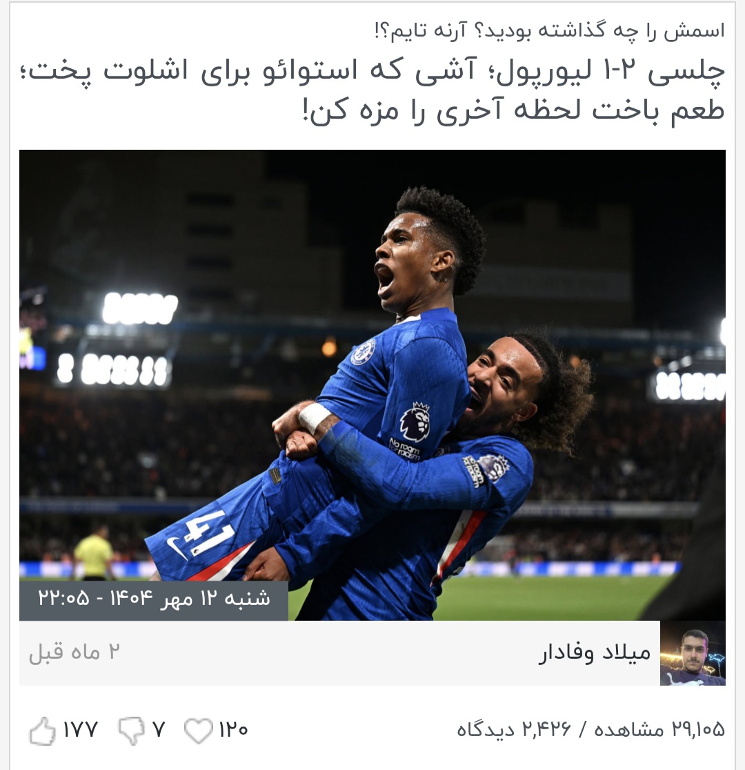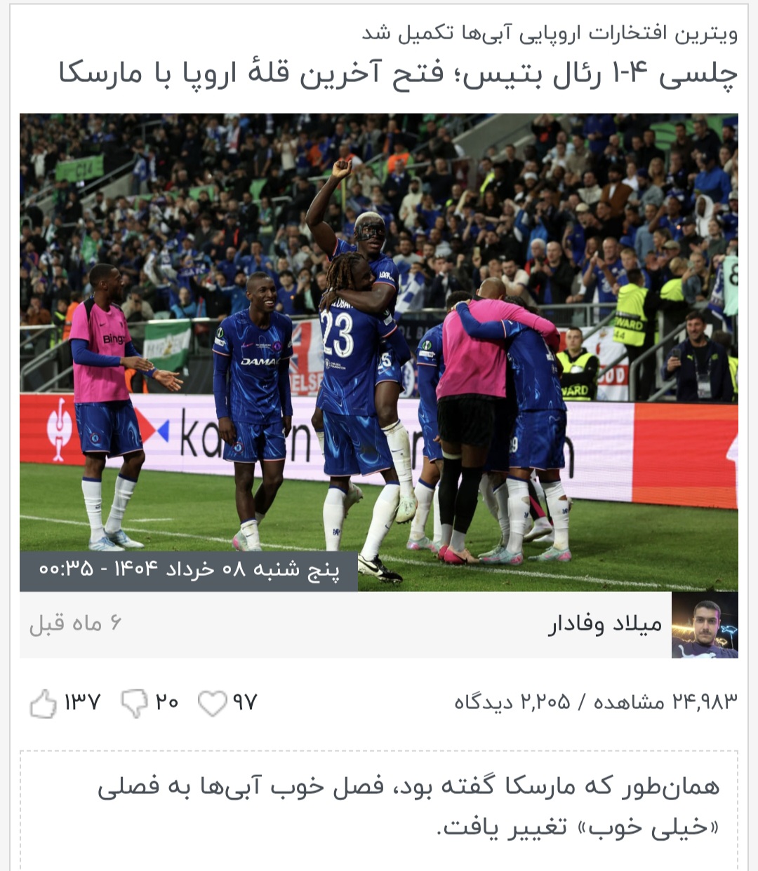 کامبک افسانهای! ۱-۰ عقب بودن، اما مارسکا نیمه دوم ریس جیمز رو آورد و سیستم رو به ۳-۴-۳ تغییر داد. پالمر دو تا پاس گل داد، نیکولاس جکسون و سانچو گل زدن، و کایسدو با یه شوت دفلکتشده کار رو تموم کرد. این برد چلسی رو اولین تیمی کرد که همه جامهای اصلی یوفا رو برده. تاکتیک چرخشی مارسکا و استفاده از جوونها (مثل استوا ویلیان) نشون داد پروژه بلندمدتش چقدر هوشمندانهست.