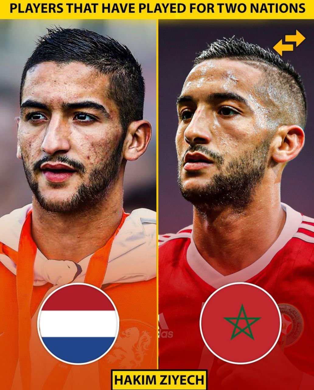 حکیم زیاش هرگز برای تیم ملی بزرگسالان هلند بازی رسمی نکرده است. او در ردههای جوانان هلند حضور داشت اما پس از آن تصمیم گرفت برای تیم ملی مراکش بازی کند.