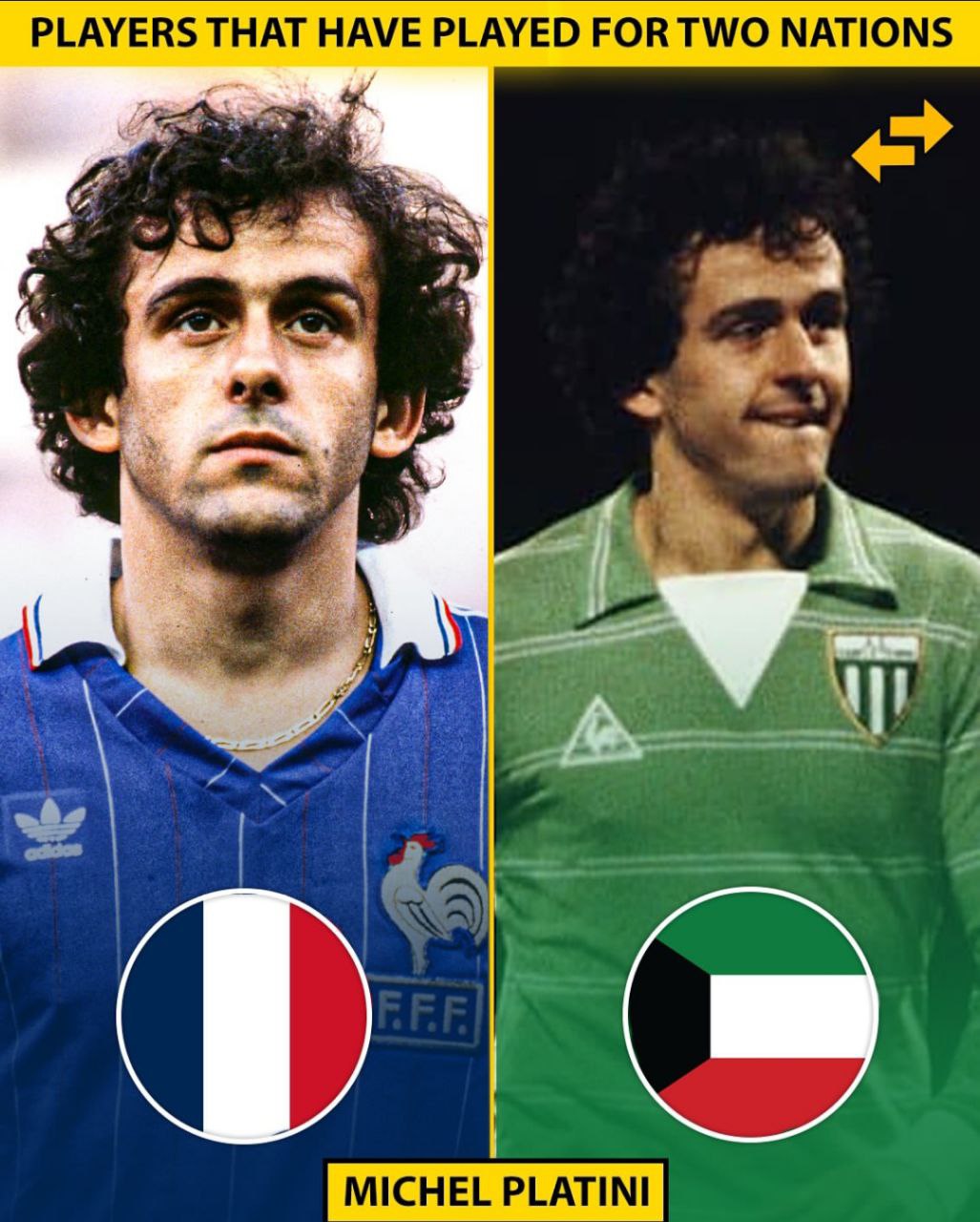 میشل پلاتینی تنها یک بار برای تیم ملی کویت بازی کرد و در آن بازی ۲۱ دقیقه حضور داشت. این بازی به درخواست امیر کویت انجام شد و کویت در آن مسابقه با نتیجه ۲-۰ مقابل شوروی شکست خورد.