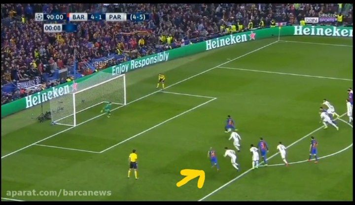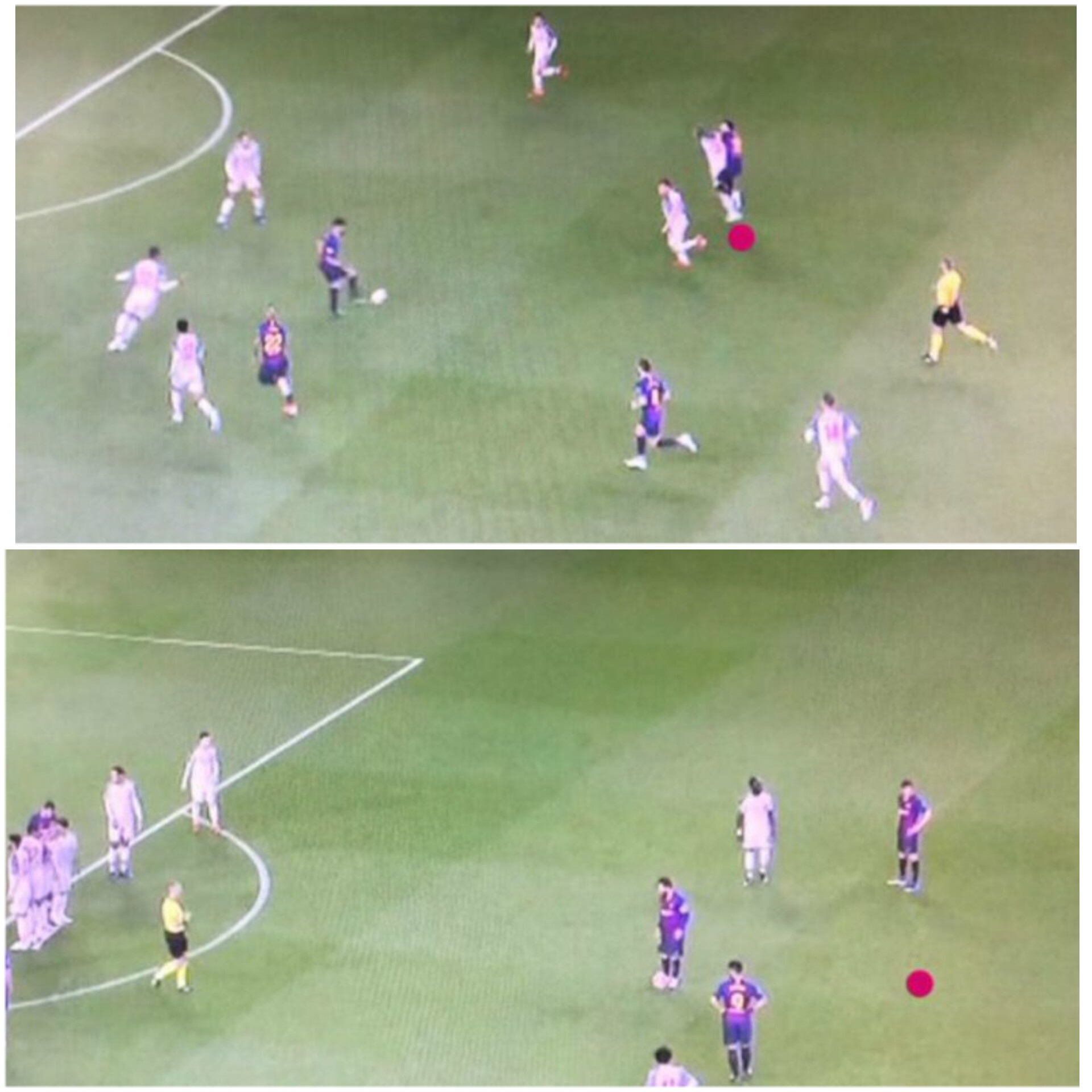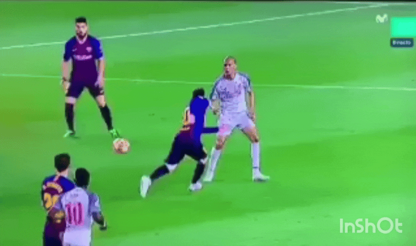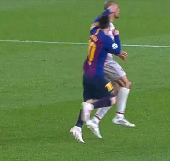 تقلب سه متری مسی روی ضربه ایستگاهی منجر به گل که با خطا اشتباه هم کسب شده بود و مسی باید در اون صحنه اخراج میشد دقیقه 82