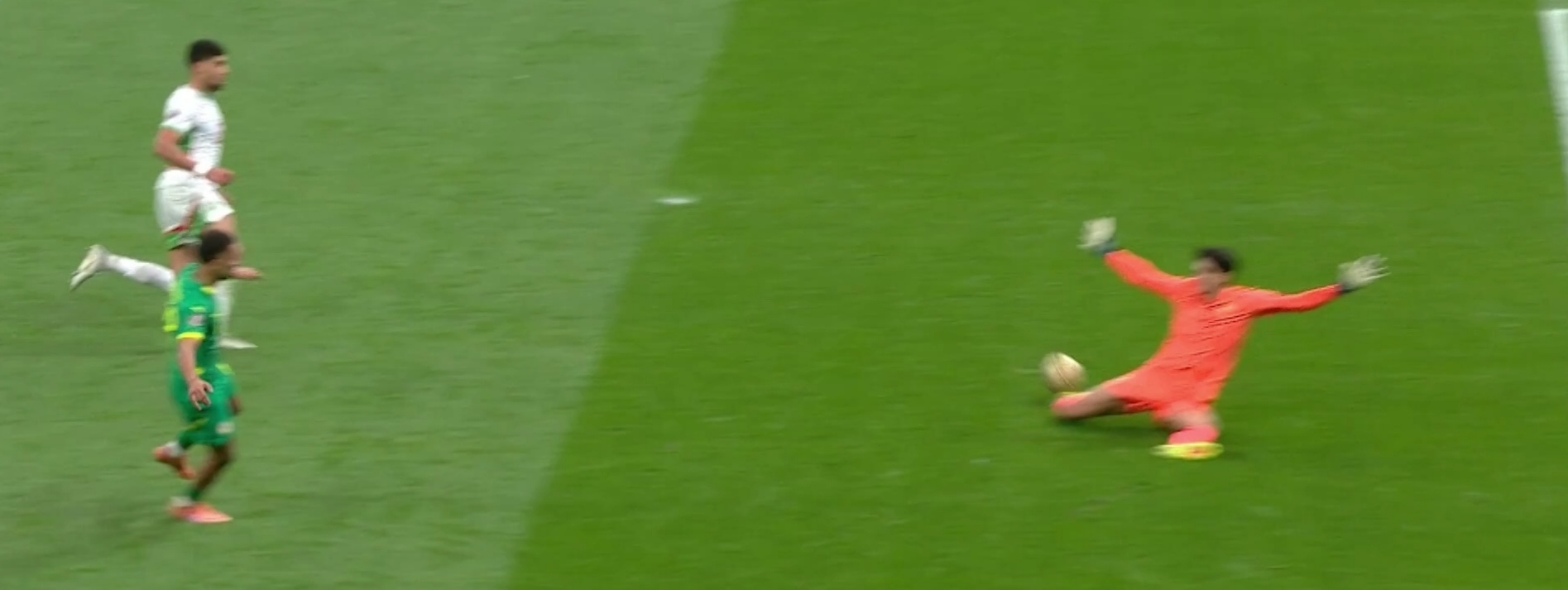 در یکی از این موقعیتها، روی اشتباه اشرف حکیمی، ایلمان اندیایه در مصاف تکبهتک با بونو قرار گرفت که ضربهی او با مهار استثنایی گلر الهلال به بیرون رفت تا جدیترین فرصت سنگالیها در نیمهی اول به گل تبدیل نشود.
