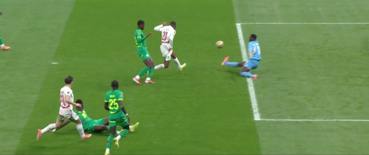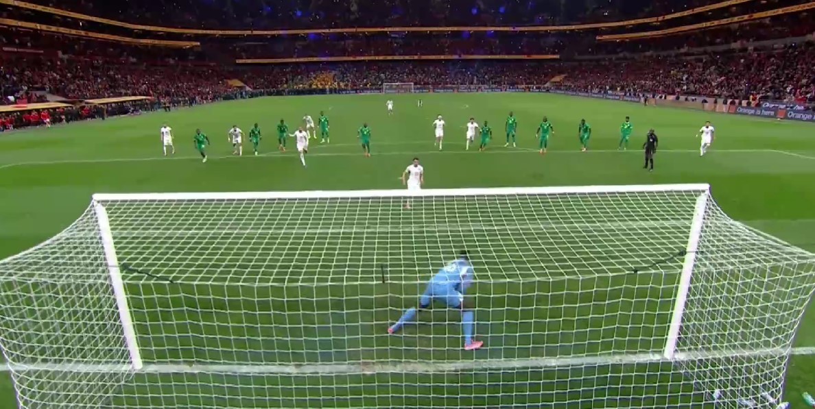 پس از بازگشت بازیکنان سنگال به زمین، همهچیز مهیا برای قهرمانی مراکش بود، اما براهیم دیاز از قهرمانِ مردان مغرب، به یکباره به فرشتهی عذاب آنها تبدیل شد! او توپ را از یوسف النصیری که پنالتیزن مطمئنی است گرفت و خودش خواست ضربه را بزند. ضربهی افتضاح او که یک چیپ کمجان بود، در اختیار ادوارد مندی قرار گرفت.